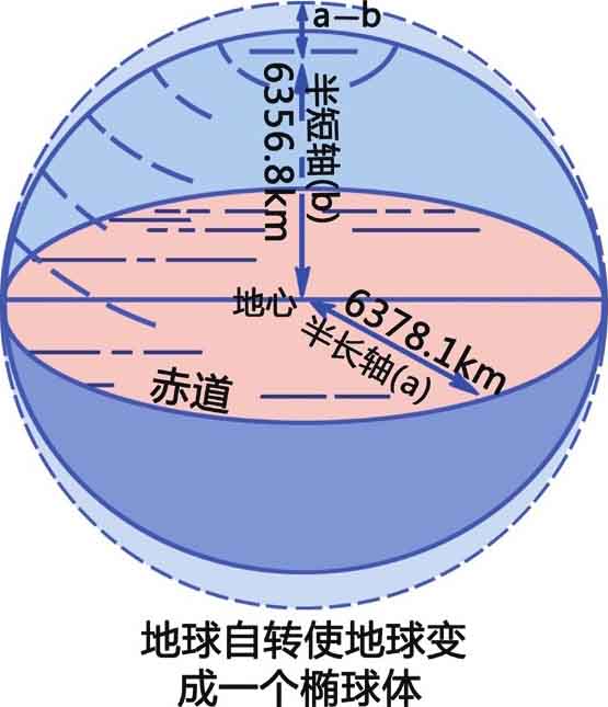 随着科技的进步,尤其是卫星探测技术的应用,现在人们对地球的形状和大小有了更深的认识。科学家发现,由于地球一直在自转,因此它并不是一个完美的圆球,而是一个赤道略鼓、两极略扁的椭球体。给你们看张图,你们就清楚了。根据人造卫星的测量,地球的赤道半径(也就是球心到赤道的距离)略大,有6378公里;而它的极半径(也就是球心到极地的距离)略小,有6356公里。不过两者的差距很小,只有千分之三,所以我们还是可以把地球看成是一个比较标准的大圆球。