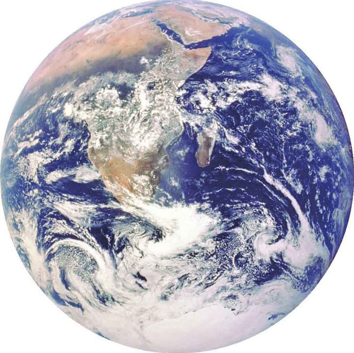 地球是什么样的?它是一颗蓝白相间的球形弹珠,也是一粒悬浮在茫茫太空中的微小尘埃。
