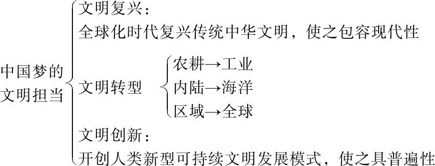 因此,中国梦不只是中华民族的伟大复兴,更是通过民族复兴实现文明的转型与创新,并在这一过程中,确立中国作为世界领导型国家、中华文明作为人类领导型文明的地位,通过包容西方文明、引领人类新文明,而实现人类文明从西方向东方、从北方向南方的范式转移,开创人类文明可持续发展的美好未来。