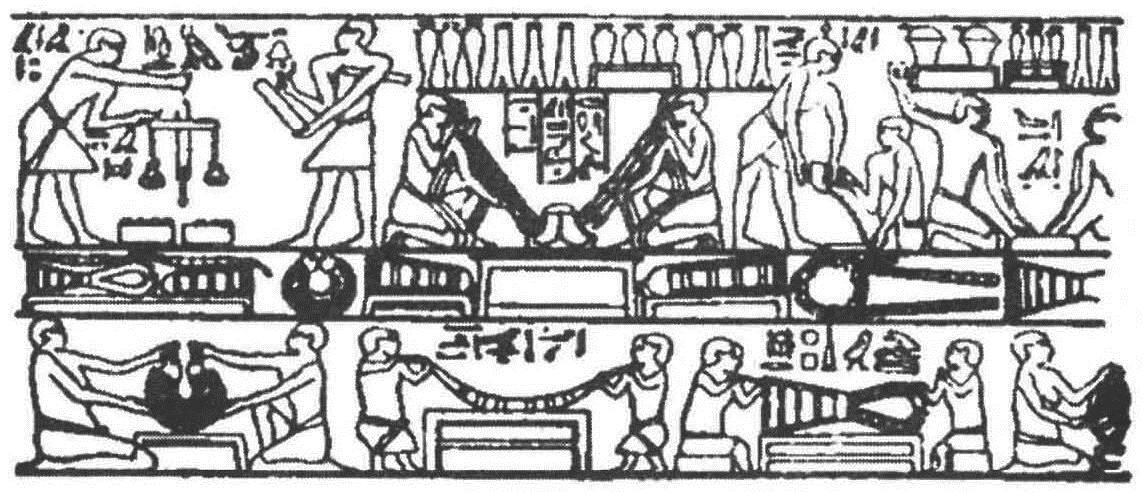 金字塔时代埃及人加工珠宝的过程在图50中能够看到。