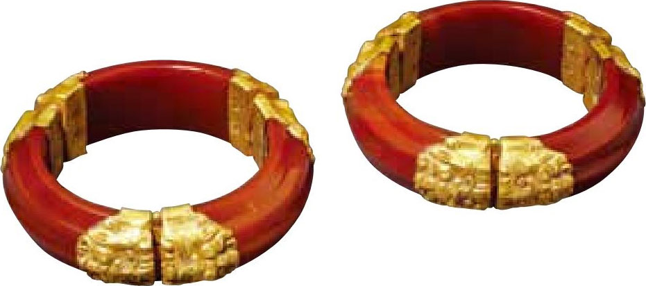 金镶玛瑙手镯一对·唐