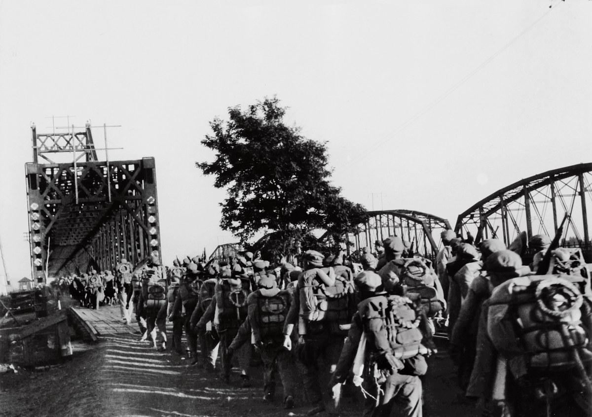 1950年10月25日,中朝边境的安东(现丹东),中国人民志愿军入朝作战,雄赳赳、气昂昂地跨过了鸭绿江大桥。