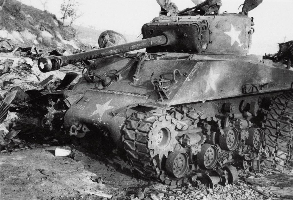 1950年11月中旬,在一、二次战役被我军摧毁的美军坦克。
