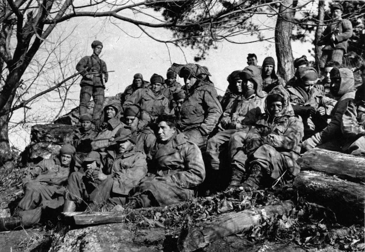 1950年11月中旬,在云山战斗中被俘的美骑一师之一部。