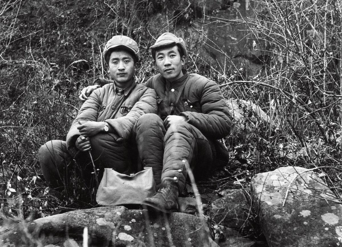 作者与《解放军画报》记者杨振亚(右)在朝鲜云山战场合影。