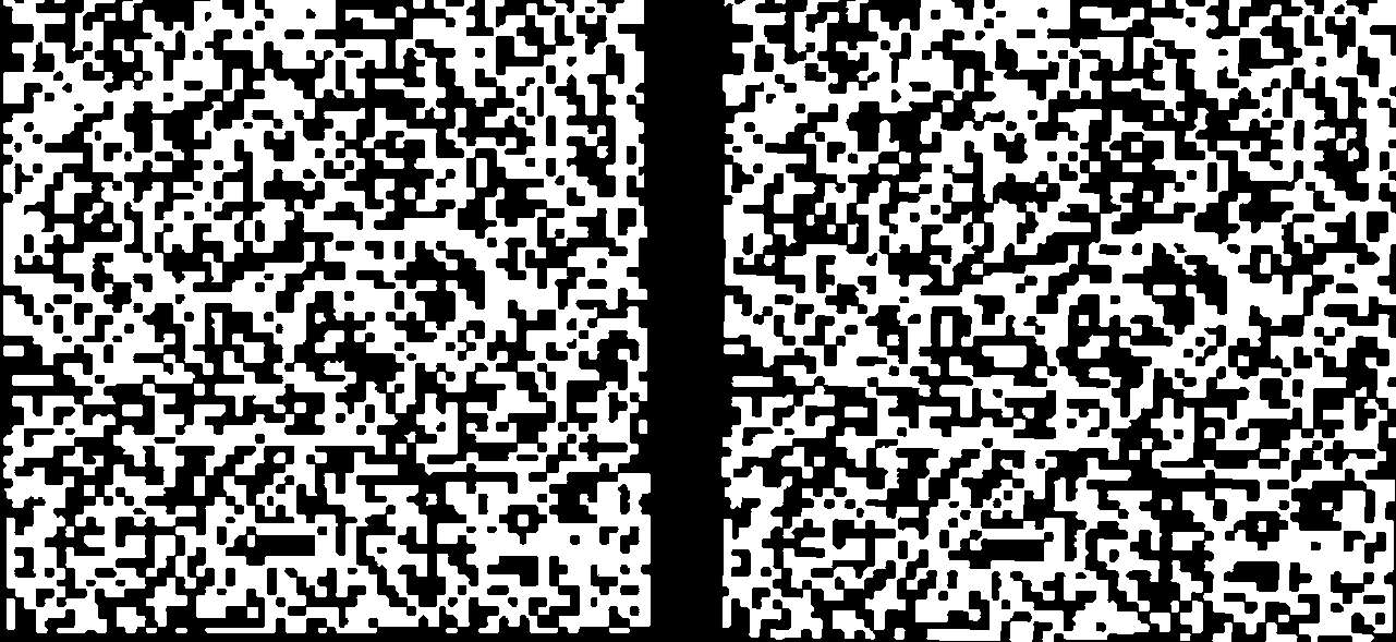 读者可能会认为双眼视差和单眼线索是无法分开的,因为您可能想象不出自然界中有没有形状的对象。这样就产生了一个问题,立体感中究竟有多少是完全由双眼视差造成的呢?这似乎是一个难题。1959年,匈牙利裔美国神经科学家尤勒茨(Béla Julesz)发明了一种方法解决了这个问题。他用随机数在一个方块内产生了一个像二维码那样的黑白图形。他用许多等间距的横线和竖线把整个方块分成许多小格,对每个小格都随机地分配一个数值在0和1之间的随机数,如果这个数大于0.5就把这个小格涂黑,否则就让它保持白色,这样就得出了像图1-19左图那样的一个图形。然后他在这个图形旁边的一个同样大小的方块中划出同样大小的小格。他在左图中心处取出一块区域(在这张图里是一个小圆),在右边方块里也取出同样的区域,不过把这个区域横向移动一小段距离,然后把左边小圆中的黑白子依样画葫芦地照搬到右图中经过移动以后的小圆里面。然后把小圆外面的区域完全按照左图中相应格子的颜色涂黑或者不涂。至于由于小圆移动所空出来的地方则再随机地在某些小格子里补上黑色。所以这时左右两个图形除了中间的小圆位置有差别外就完全一样了(空出来后补颜色的格子很少,可以忽略)。如果用双眼分别去看左图和右图,那么中间的小圆就相当有了某种视差。如果光是视差就能产生深度感的话,那么中间的这个小圆就应该上浮或者下沉(这取决于小圆向哪个方向移动)。结果是您可以看到一个小圆下沉了下去。然而如果只用单眼去看的话,那么这两个图上都是随机分布的一些黑色小格子,既看不到圆,也看不到什么东西下沉。由于这个图形是随机生成的,单眼看去就像是二维条形码一样,根本就没有什么单眼线索提供深度感。这样尤勒茨就用一种非常巧妙的方法证实了不用任何单眼线索,只要利用双眼视差就可以产生深度感。之后,由他发明的这种图对就被称为尤勒茨随机点图对,或称随机点图对。