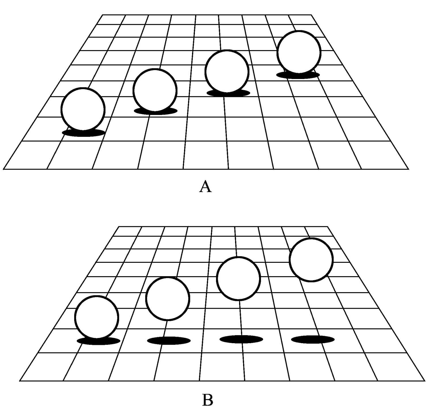 有读者也许会提出疑问,是不是必须要有双眼视差才有立体感呢?如果我们闭起一只眼,我们是否就完全没有了深度感呢?当然不是。由于进化和经验,我们只用一只眼睛也能对物体的远近有所判断,这就是所谓空间深度的单眼线索。这些线索包括:远处的物体会被近处的物体所遮挡;两条平行线在向远处延伸时其间的距离看起来会越来越小,这种现象被称为透视,画家常常利用这一点使他们的画作更富于立体感;由于空气的作用,遥远的物体比起近处的物体来说要更模糊、更带有蓝色;阴影也对深度感有帮助;如果你事先对某些物体的大小有所了解,那么当你看到它变小的地方一定是比较远的地方。此外,当运动时物体空间位置变化所引起的运动视差(motion parallax)也起着非常重要的作用。