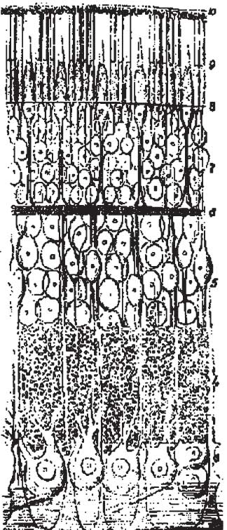 图1-7舒尔策笔下的视网膜。