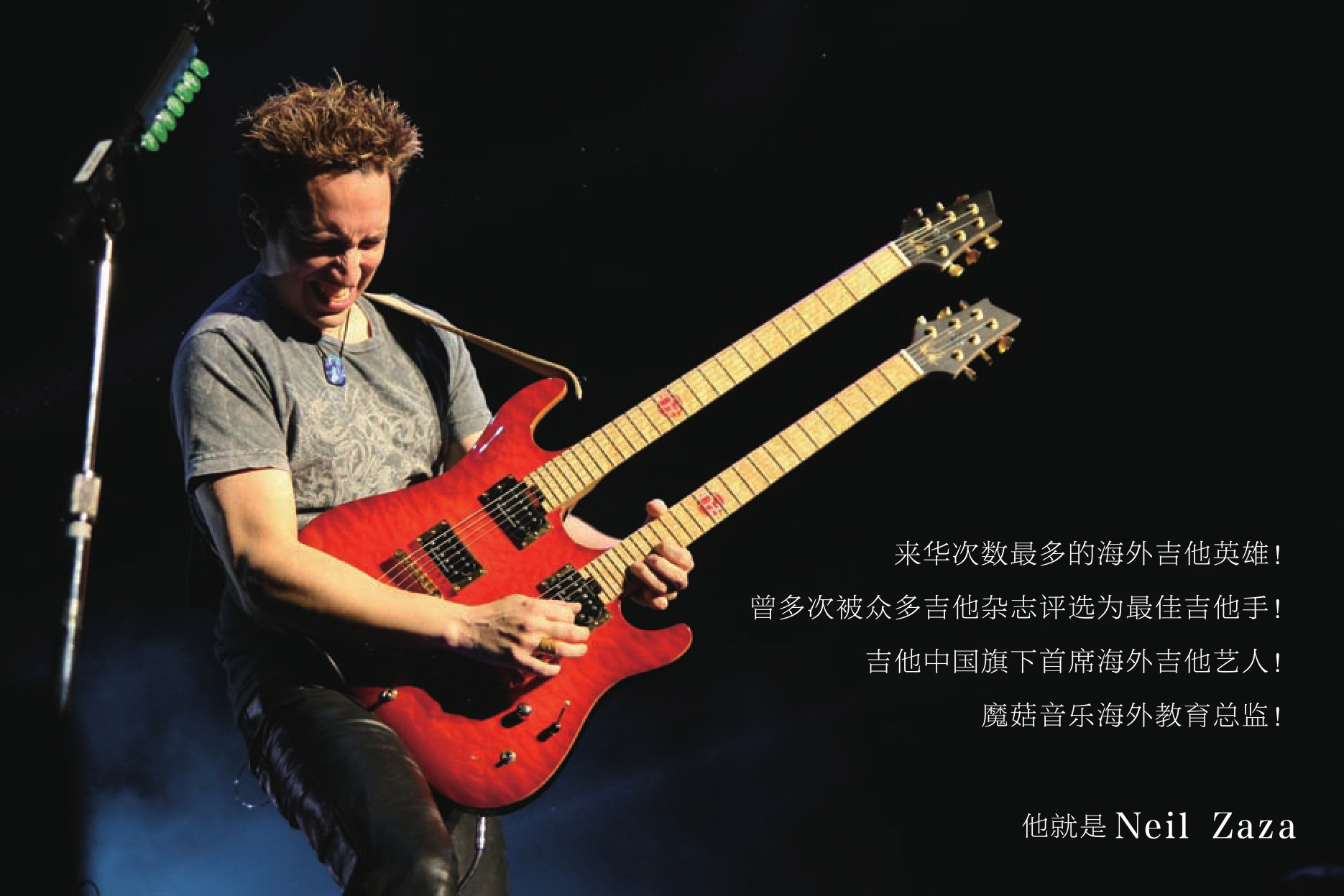 他的一曲《I'm alright》风靡中国摇滚电吉他界,成为被吉他爱好者翻弹最多的名曲之一,加上Neil Zaza 永远充满亲和力的笑容,使他成为在中国最受欢迎的吉他英雄之一!