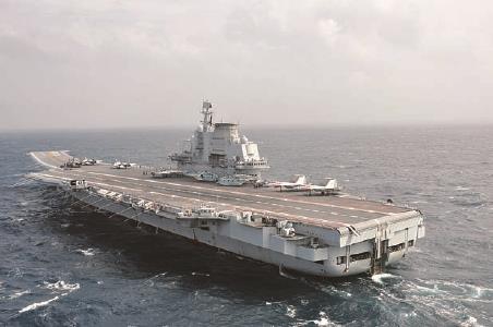 中国海军航母辽宁舰正在进行训练。