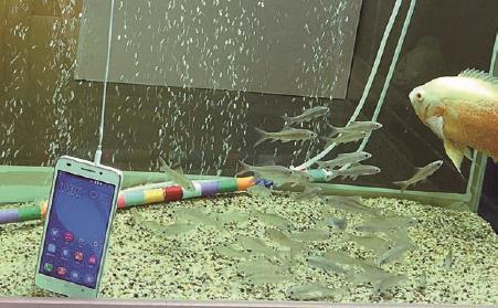 纳米新型防水设备引领电子消费革命,图为在鱼缸里展示手机防水效果。