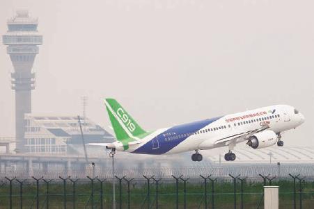 2017年5月5日下午,国产大型客机C919在上海浦东国际机场首飞升空。这是中国首次按照国际标准研制、拥有自主知识产权的大型客机。