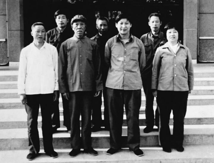 1985年5月,习近平同志与黄春生(河北省劳模,前排左一)、冯玉明(全国人大代表、河北省劳模,前排左二)、吕玉兰(全国劳模,时任正定县委副书记,前排左四)和结对帮扶户人员在正定县委办公楼前。