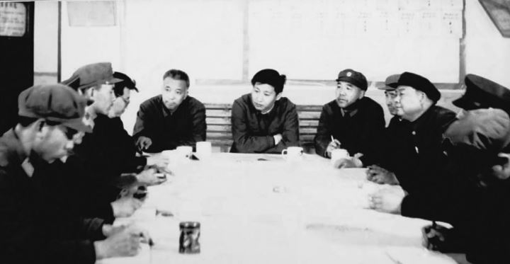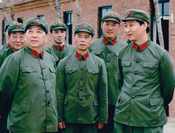 1984年6月,习近平同志陪同中共中央政治局候补委员、北京军区司令员秦基伟(前排左一)等视察正定县民兵训练基地。