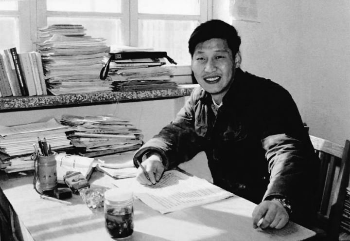 1983年10月,习近平同志在正定县城大街上临时摆桌子,听取群众意见。