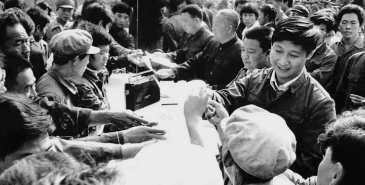 1984年10月,习近平同志在正定县街头发放《民意调查表》。