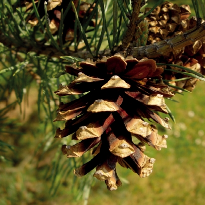 当松果还在树上时,它保持着闭合——只在一个短暂的时间内会张开,让花粉进入胚珠(将来的松子)。松果只有掉落到地面后才会打开。从树上落下后,鳞片的纤维开始干燥失水:这就使松果开口了。事实上,松果的鳞片有两层,而两个层面的纤维朝相反的方向生长。当松果变得干燥时,外层收缩的程度更大,这就迫使鳞片向外弯曲——只要简单地观察一颗松果就能明白这种机制。