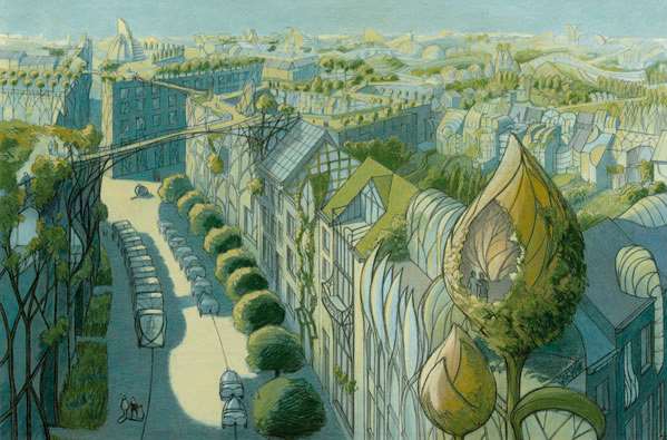 竹子的快速成长启发了建筑师吕克·史奇顿(Luc Schuiten)“竹子房屋”的设想,这种房屋的屋架不是用竹条搭建,而是用生长中的竹子。房屋的房间分布在第二和第三层,由植物的茎来连在一起,并且由屋外的走廊和楼梯连通。因为竹壁厚度在生长过程中不会变化,所以这个结构始终能保持稳固,即便这间房子——就像构建它的竹子那样——有时候会在风中轻微摇摆。