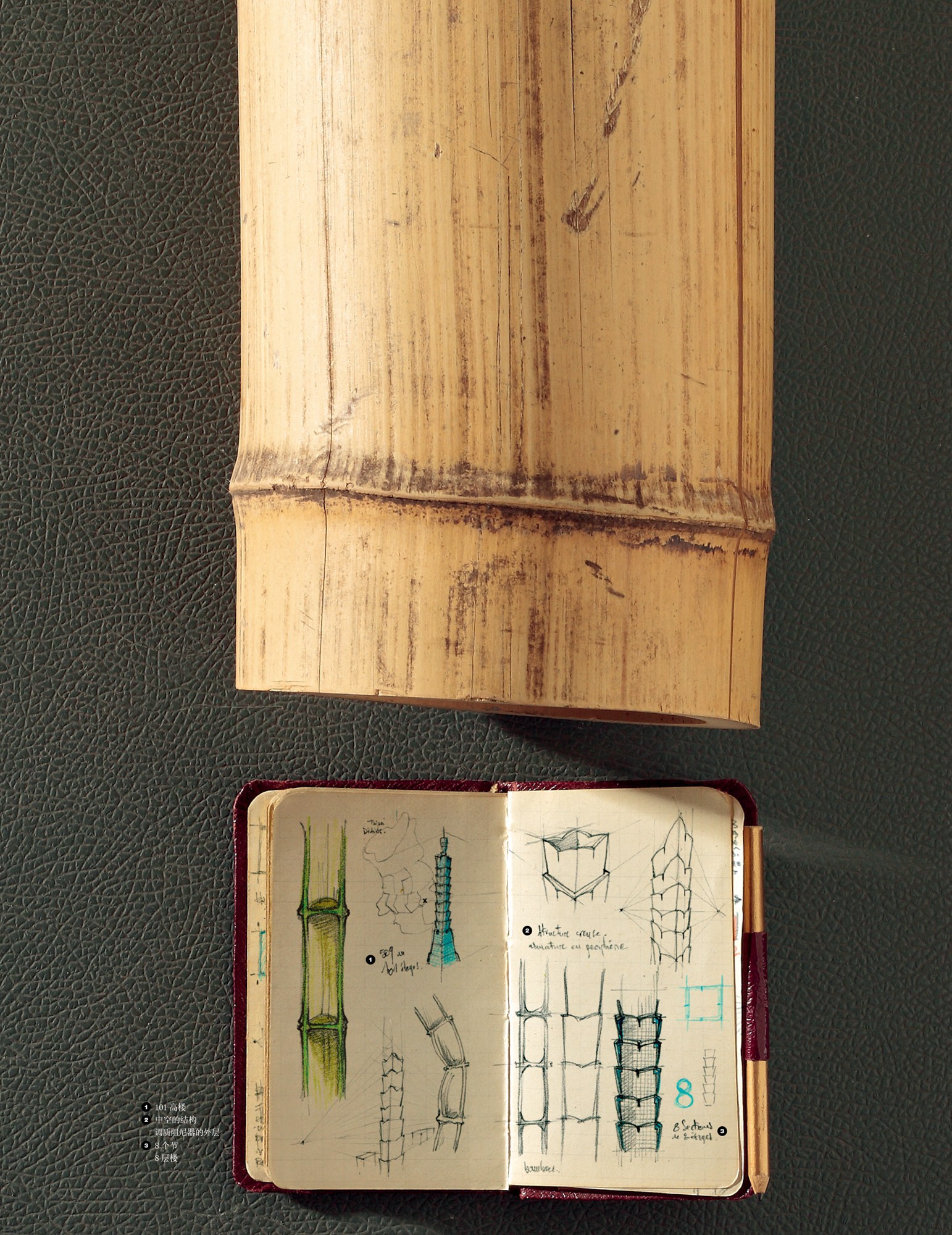 我们能拿竹子做任何事:它是一种如此便利的材料,以至于我们会自问何必要模仿它——倒不如直接使用它。竹子不仅是亚洲的传统建筑材料,而且还成为了生态建筑概念中重要的元素。它的坚硬和轻盈令它成为一种便于改造的材料:不仅有竹子做的乐器、单车,甚至还有竹子做的汽车……使用竹子的最佳理由就是它的生长速度:所有与它打过交道的园丁都知道,放任它的生长比抑制它的生长更容易。原因在于竹子并不是树,而是一种草。与其他的草本植物相同,它围绕地下的茎(根状茎)生长,根状茎是整棵植物的真正心脏。“躯干”(称作“茎”或者“竹秆”)——在地面上生长的部分,其实等同于草的叶片:将它们砍掉并不会让植物虚弱——即便所说的茎已经向上生长了好几米。