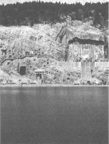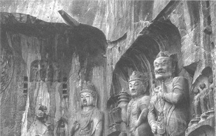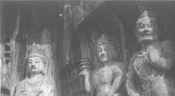 龙门石窟在唐代的造像与北魏比较有了很大的变化。在唐代的造像题材中弥勒佛的造像数量仅次于阿弥陀佛,释迦却显著减少,菩萨中以文殊、观世音为最多。在艺术上,唐代的圆刀代替了北魏平直的刀法,佛像衣纹更加流动飘逸,力士夜叉浑身肌肉突起,既符合解剖的原理,又适当加以夸张,充满雄强的气势和向外迸发的力量。它们在借鉴外来雕刻技艺的同时,还吸取了中原地区传统的艺术手法。