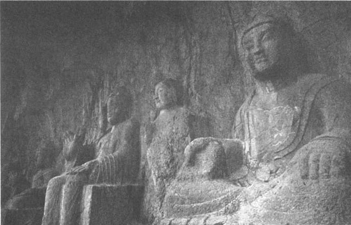 虽然石窟造像属于佛教艺术,但它跟政治紧密相连。唐代开窟造像在唐高宗和武则天时期达到了鼎盛,从龙门许多唐代石刻造像中,还可以窥见武则天一步步走上女皇宝座的踪迹。万佛洞完工于唐高宗永隆元年十一月,是专为唐高宗、武则天做“功德”而开凿的功德窟,也是以唐朝宫廷内道场供奉者智运等为首的一批御用僧尼,奉命集体为唐高宗及武则天发愿雕造的。武则天特别崇信弥勒,为此,她在龙门广造弥勒佛。千佛洞、惠简洞、大万五佛洞、极南洞和摩崖三佛都是以弥勒佛为主尊的洞窟。