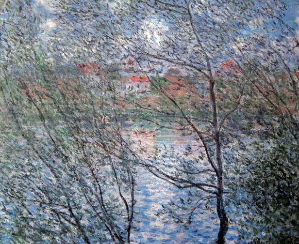 图13 莫奈《透过树丛的春色》。树叶的半