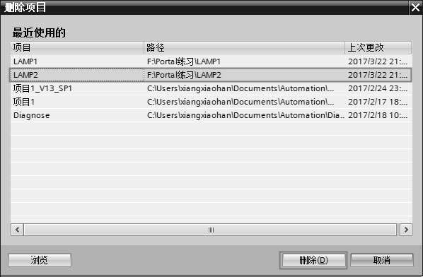 ② 方法2:打开博途项目程序的存放目录,如图3-27所示,选中并删除“LAMP2”文件夹。