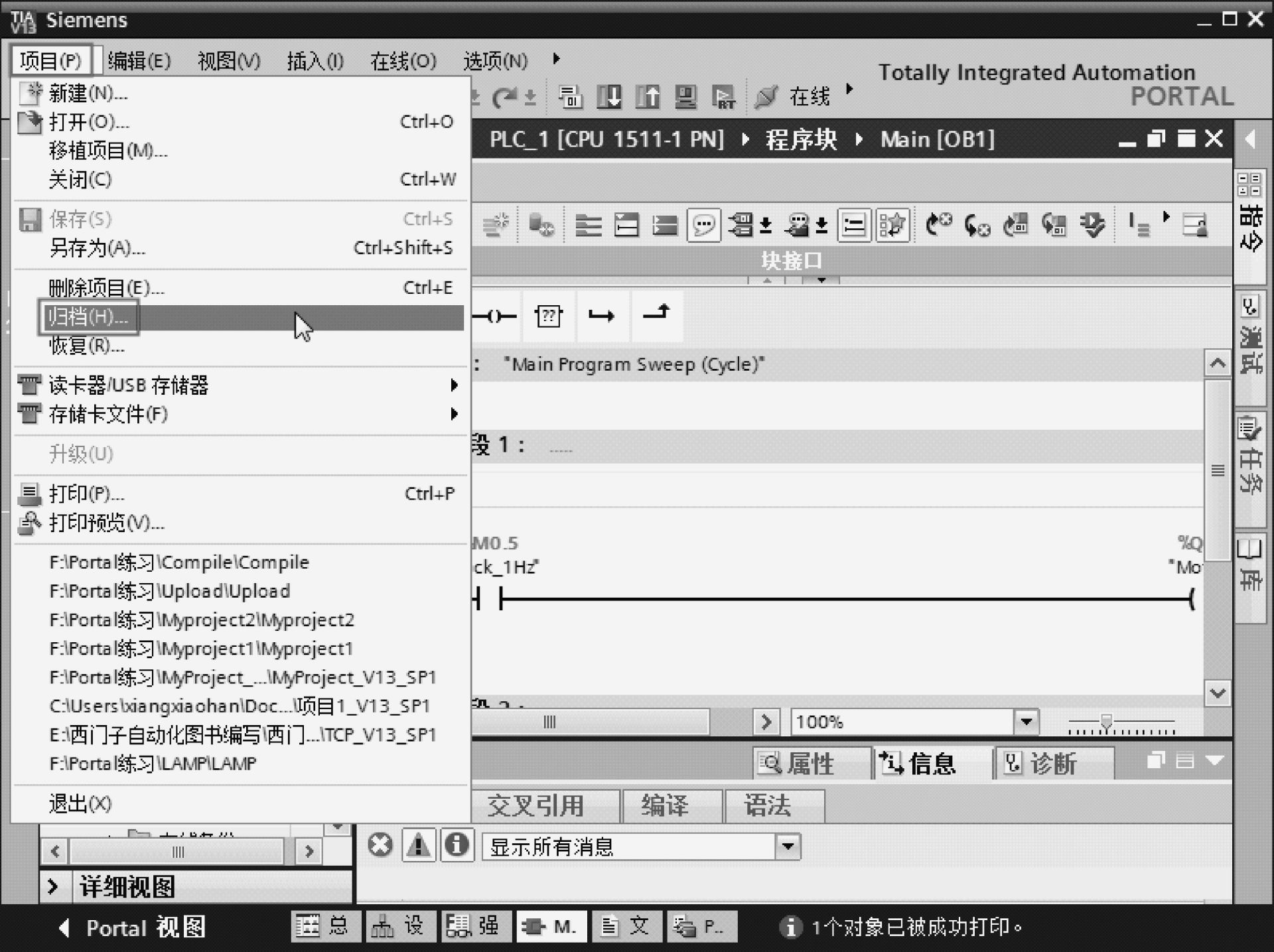 打开项目视图,单击菜单栏的“项目”→“归档”,如图3-78所示,弹出选择归档的路径和名称选择界面,如图3-79所示,单击“保存”按钮,生成一个后缀为“.ZAP13”的压缩文件。