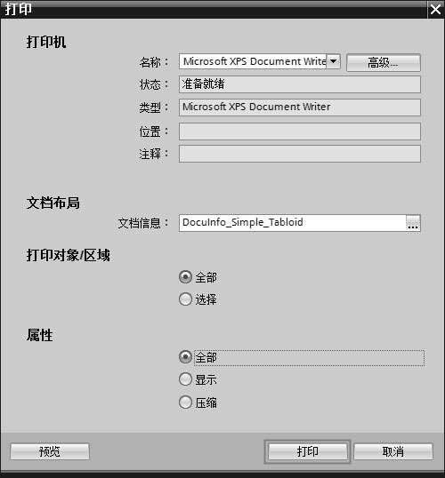 在项目视图中,使用菜单栏命令“项目”→“打印”,打开打印对话框,如图3-76所示,打印机名称选择“Microsoft XPS Document Writer”,再单击“打印”按钮,生成的xps格式的文档如图3-77所示。