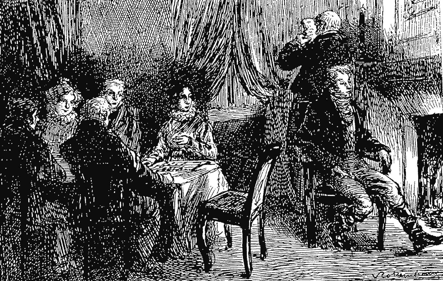 正当欧也妮和她的母亲想方设法把葛朗台安排给侄儿的房间布置得漂亮一些时,沙尔成为德·格拉散太太进攻的对象,她在挑逗他。