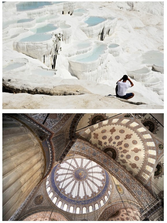 土耳其最著名的风景棉花堡与清真寺。(摄/芦涛)