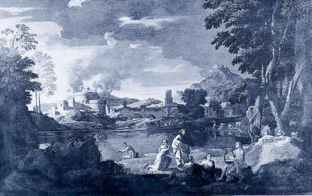普桑杰作中欧律狄刻跟在俄耳甫斯身后的场景。