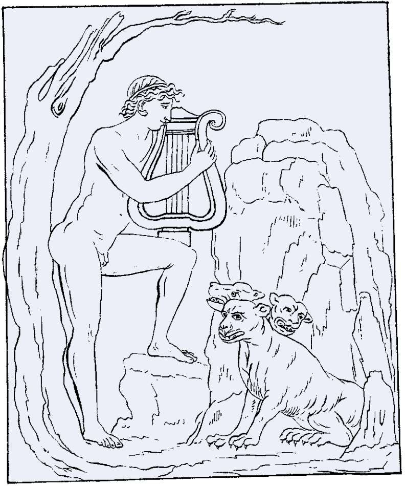 俄耳甫斯是缪斯女神中主司史诗的卡利俄珀的儿子。他跟随阿波罗(参见本书80页)学习里拉琴,据说他弹奏起里拉琴时甚至连树木和岩石都会倾听他神圣的琴声。他狂热地爱着自己的妻子欧律狄刻,在欧律狄刻死后俄耳甫斯悲痛万分,最终他决定前往冥府将爱妻救回来。他的琴声甚至感动了路上的卡戎和刻耳柏洛斯,最后通过一曲哀歌他向哈得斯和珀耳塞福涅婉转地表达了自己的祈愿。