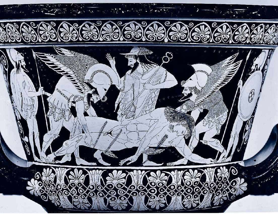 带翅膀的睡眠之神和死神抬着受到致命伤的英