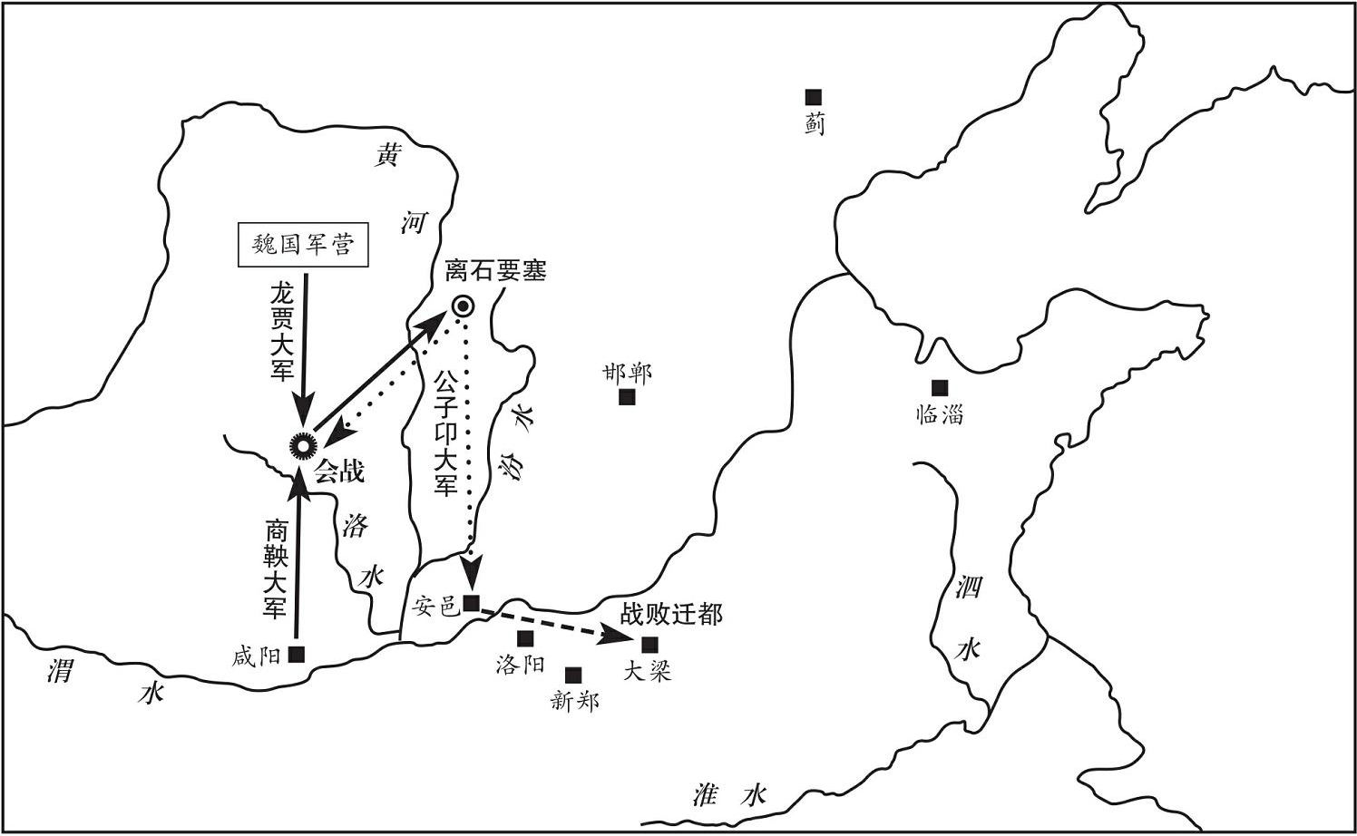 首先是魏国朝野震恐,深感安邑处在离石要塞和少梁邑的遥遥夹击之中,立即议决迁都大梁。魏国都城南迁虽说已准备多年,但丢失河西之后的南迁,与本来准备的南迁却有着天壤之别。未失河西,魏国南迁大梁,是要将北部安邑变成与燕赵齐三国放手大战的重镇,南部大梁则泰山压顶般威慑楚韩两国,从而完成统一天下的宏大谋划。那时,魏国根本没有将秦国的力量考虑在内,因为整个河西地区就像压在秦国头顶的一座大山,秦国根本无力东出中原。如今情势陡然大变,秦国非但全歼了魏国仅有的精锐大军,一举收复了河西,还硬生生夺取了离石要塞与少梁山地,又压魏国退出了函谷关外的崤山。如此一来,魏国北部完全处在秦国和赵国的巨大压力之下,秦军东出离石与少梁几乎半日便可兵临安邑。魏国西部则被崤山像一根楔子一样钉在那里。要不是中间夹了一个东周洛阳,秦国几个时辰就可以从崤山攻到大梁。这种形势,恰恰是魏国当初压迫秦国的翻版。秦国对魏国安邑、大梁的威胁,恰恰如当年魏国对秦国栎阳的威胁,同样近在咫尺,同样痛苦难当。这种形势下魏国迁都,明显是一种龟缩,而不是谋求伸展。