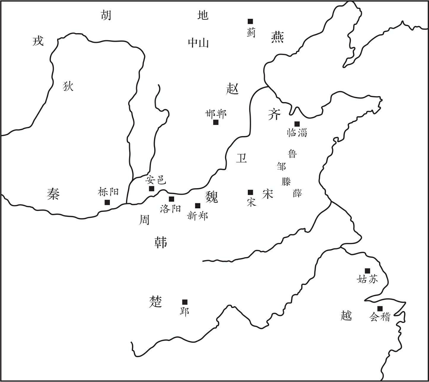 第四位到达的是齐王,叫田因齐,史称齐威王,是田氏齐国的第六代君主。他年龄不到三十岁,即位刚刚两年,却已经是令天下刮目相看的英主。在两年的时间里,田因齐整顿吏治、减少赋税、招贤用能、兴办学宫,齐国一片生机勃勃;又南却强楚,西退燕赵,宣布称王,使齐国陡然间声威大振。庞涓对齐国的事态非常关注也非常了解,很是佩服这个年轻君主的霹雳手段,惊叹为天赋奇才。在七大国中,楚国春秋初期就已经自行称王,魏国是八年前称王,而齐国则是这位年轻君主即位一年宣布称王的。这样,天下就有了四个王国:名存实亡的中央之王——周,以及三个诸侯王国——楚、魏、齐。齐威王敢于大胆称王,无疑向天下宣示了齐国敢于抗衡天下的信心和决心。庞涓作为即将统一天下的魏国上将军,其实内心最没底的就是这个齐国。齐国地处大海之滨,土地肥沃,民风强悍,非但涌现了孙武这样的兵学世家,且近年来又文风大盛、工商业昌隆,临淄已经成为仅次于大梁的商业大都会,号称“齐市”。目下,又出了这样一个大有作为的国君,要吞灭齐国真是心中没底。但归根结底,庞涓也并不看好齐国。齐国田氏的立国根基远远没有魏国牢靠。魏氏历经百余年流血争夺,才和韩赵两族共同瓜分了晋国,其后又变法改制,军民一统,如臂使指。齐国则不然,田氏主要靠小步新政和上层篡夺杀戮之方式夺得姜齐政权,旧贵族盘根错节势力极大,田氏在齐国执政后又没有彻底变法改制,世族封地的势力依然很大,根基自然不坚实可靠。对于这样一个大国,庞涓提出的策略是“重和轻战,静观待变”,期待齐国出现战国屡见不鲜的“其兴也勃焉,其亡也忽焉”的大起大落,其时一鼓击之,天下可定。