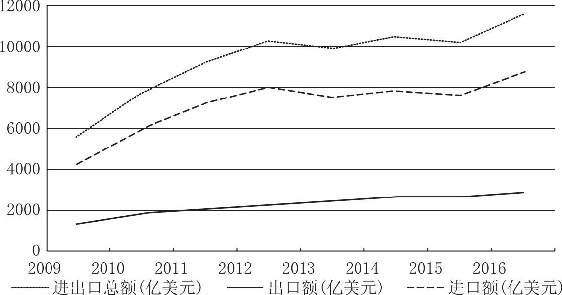 注:进出口额自2016年起,单位为人民币“亿元”。