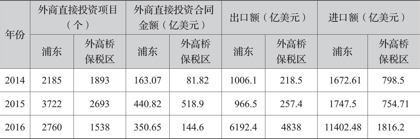 2016年,浦东新区外商直接投资项目为2760个,其中外高桥保税区为1538个,占55.7%;浦东新区出口额为6192.4亿元,其中外高桥保税区出口额达4838亿元,占78.1%(见表2-18-3)。