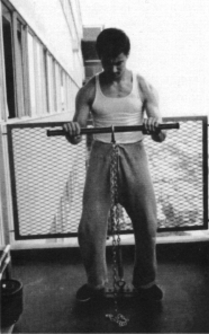 在奥克兰同中国武师的那次比武后不久,李小龙深受触动,开始学习增强力量的其他方法——不仅是耐力,而是全面整体的肌肉力量。为此,他向自己最信任的两个人,即严镜海与周裕明寻求建议,他们不只是李小龙的弟子,更是他的朋友。