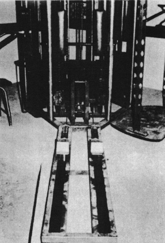 腿部推蹬器特别引人注目:在许多方面,它可以说是今天诺迪克训练设备(Nordic Trac)的前驱。推蹬器的底部延伸出两条轨道,每条轨道上装着一个脚镫,样子很像今天大多数赛跑运动员在起跑线上使用的起跑架。这两个脚镫连接着两组配重块,可以在10~220磅的重量范围内进行调整。