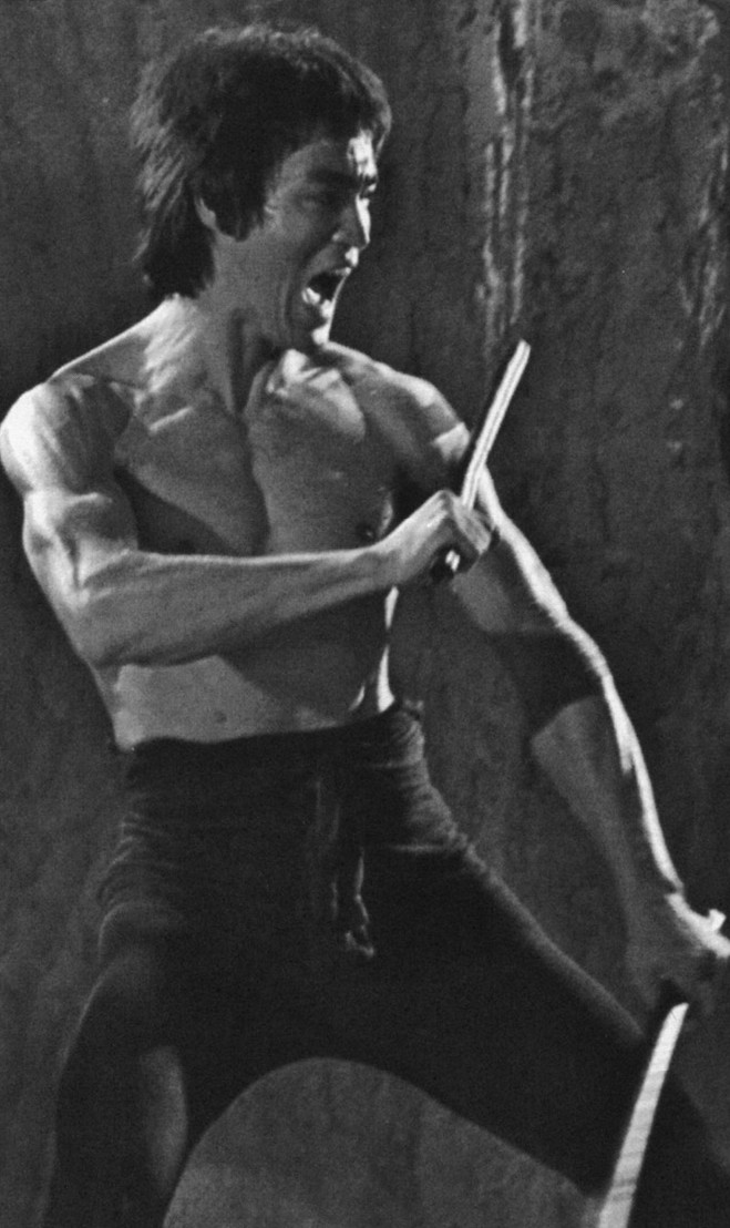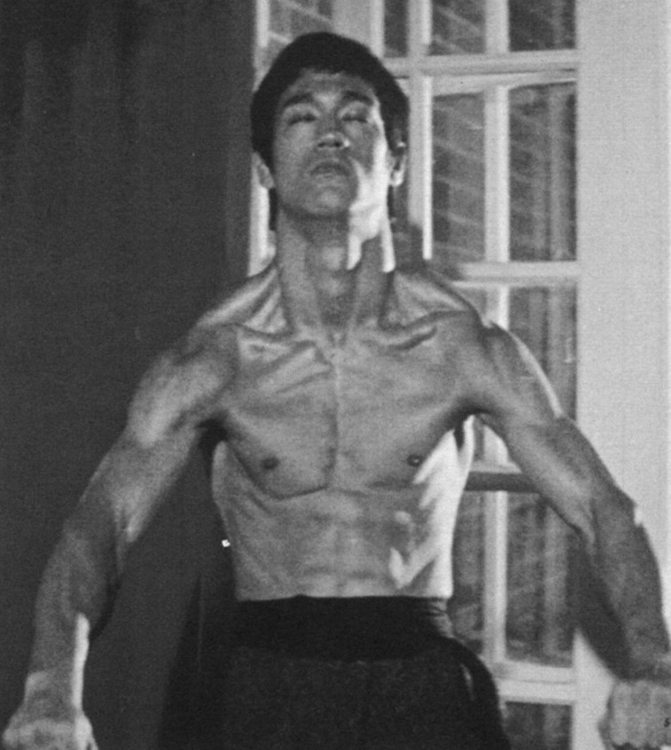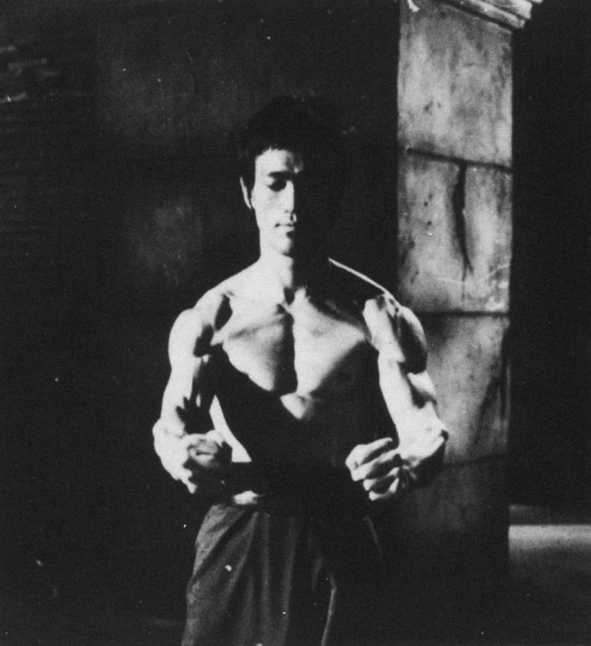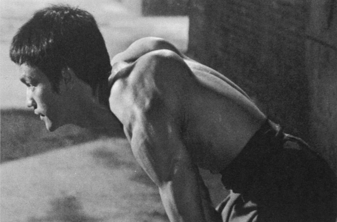 任何人只要看过李小龙在《猛龙过江》中进行的转肩练习,都会感到非常吃惊:一个人竟然能够把自己的肌肉锻炼和控制到这种程度!李小龙的三角肌和颈部肌群非常紧实,而且轮廓清晰——这主要是通过武术训练得来的,如击打重沙袋、高低沙袋、极速拳击、黐手练习,以及更多的常规训练。
