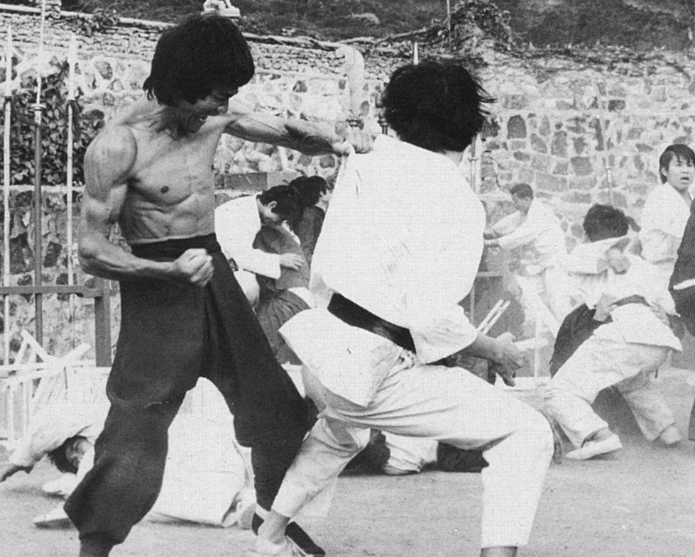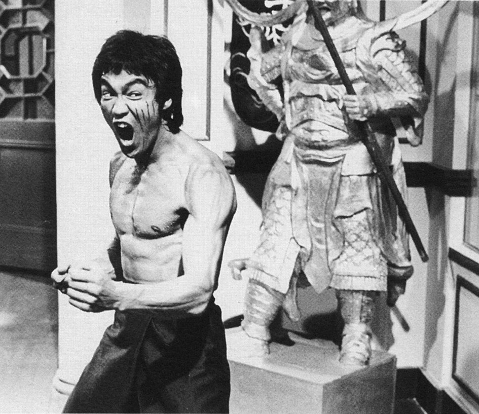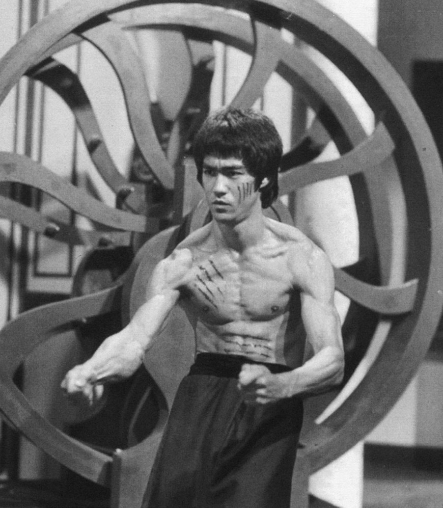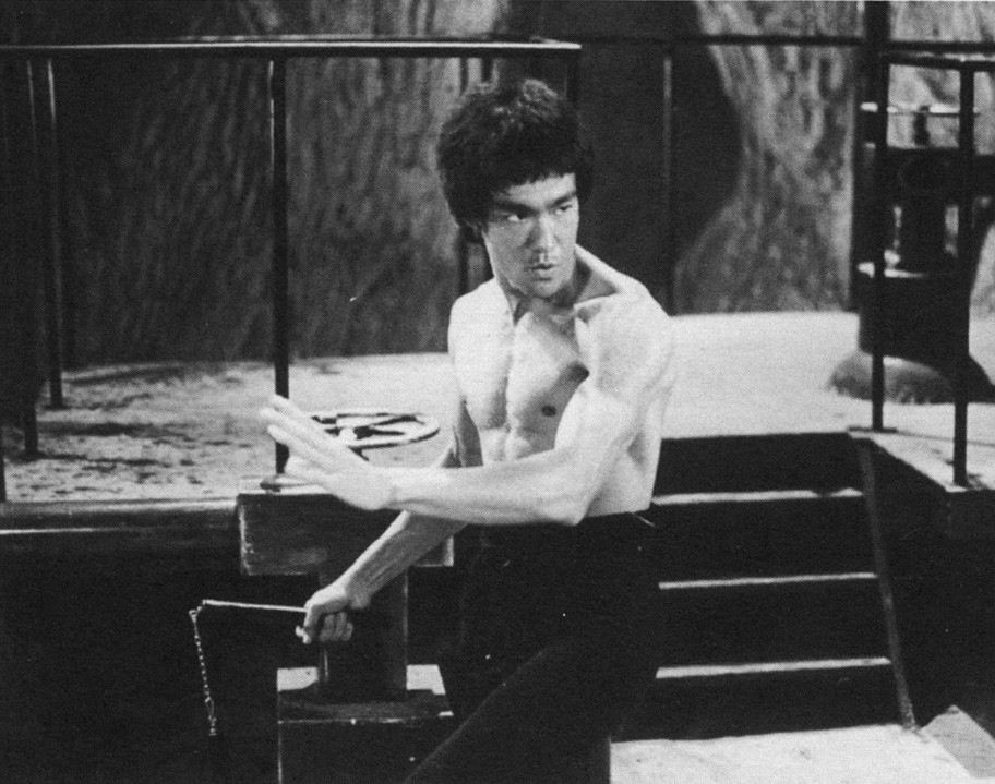 任何人只要看过李小龙在《猛龙过江》中进行的转肩练习,都会感到非常吃惊:一个人竟然能够把自己的肌肉锻炼和控制到这种程度!李小龙的三角肌和颈部肌群非常紧实,而且轮廓清晰——这主要是通过武术训练得来的,如击打重沙袋、高低沙袋、极速拳击、黐手练习,以及更多的常规训练。
