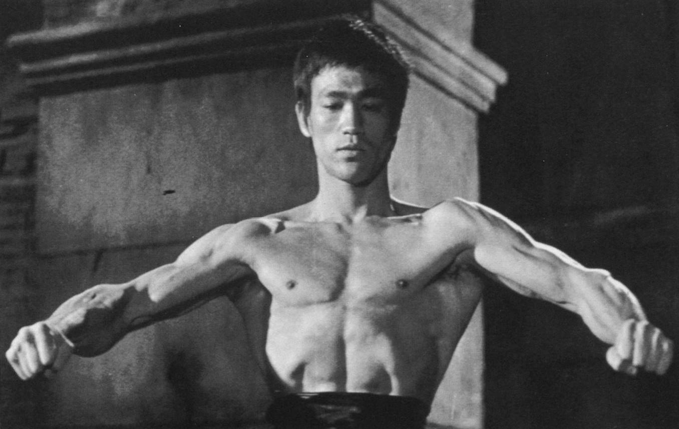 我第一次也是唯一一次听到观众对一个人的体形发出惊呼是在16岁。当时我坐在一家拥挤的电影院里,看到《猛龙过江》里赤裸上身的李小龙正在做清晨的热身运动。在这个场景中,李小龙站在公寓阳台上,先做了双手互压的静力练习,然后充分地伸展背肌,就在这一瞬间,他从一名身材精壮的武术家变成了一个超人!现场观众立刻对这一转变发出齐声惊呼,李小龙的这一形象直到今天还深刻在我的脑海中。