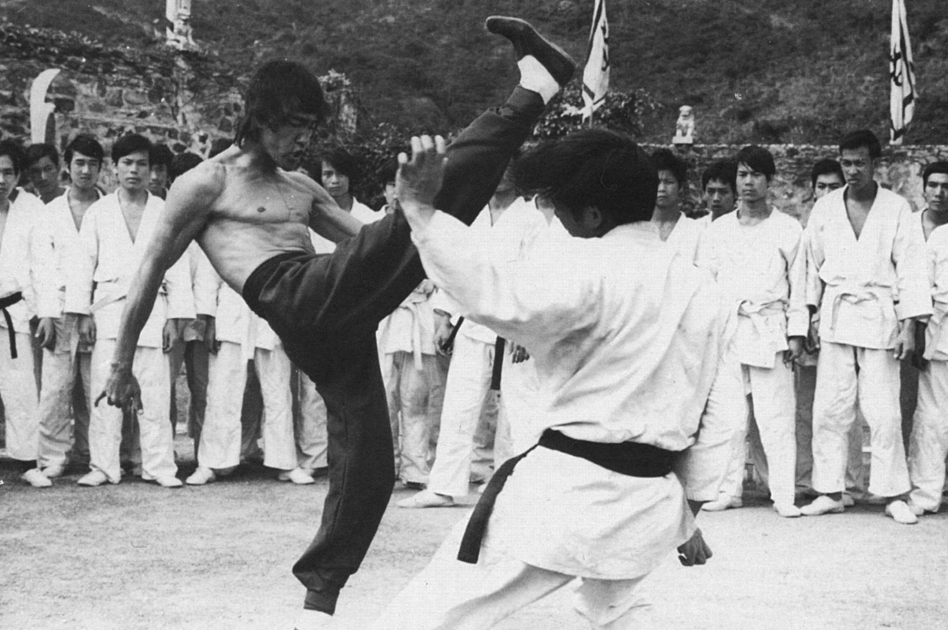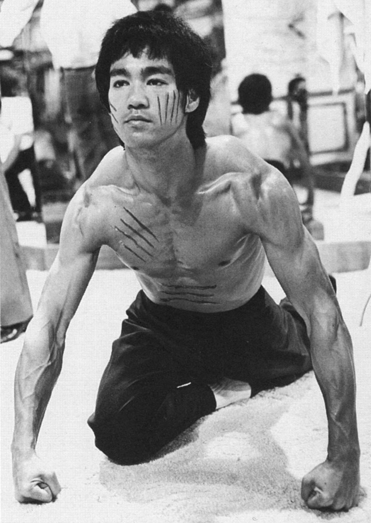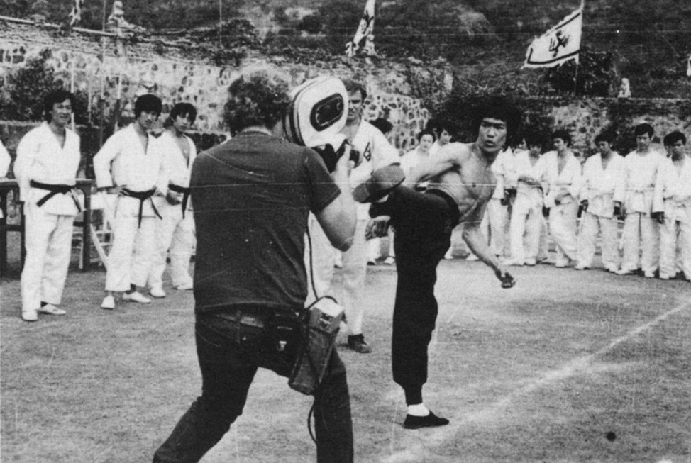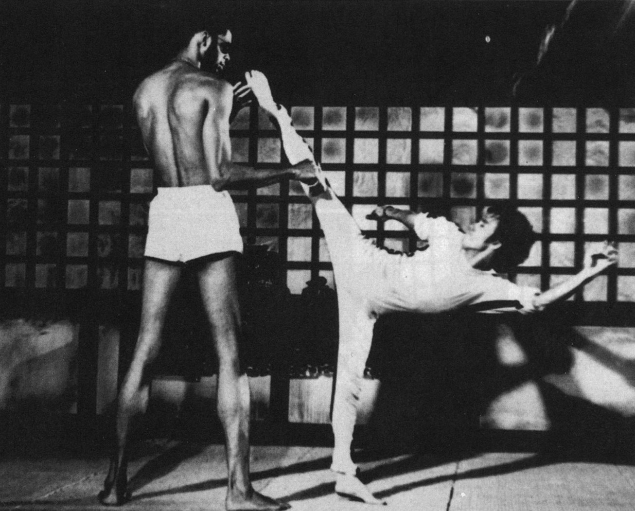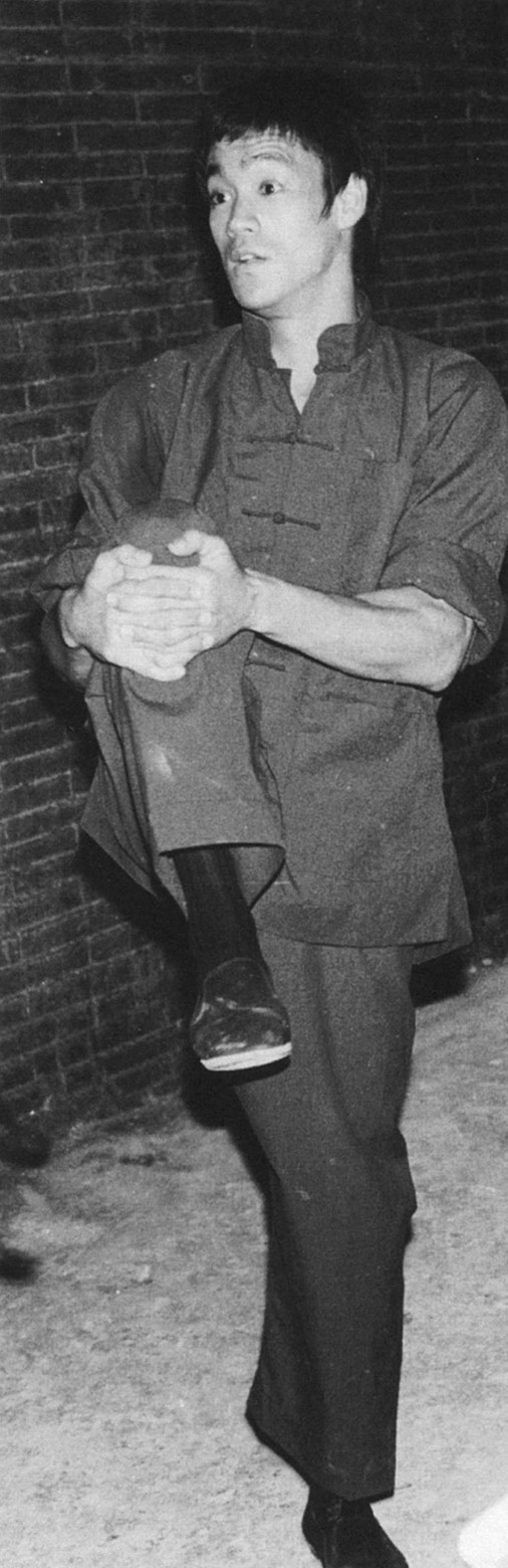通过李小龙与NBA巨星卡里姆·阿卜杜拉·贾巴尔对打的剧照或影像,我们可以直观地发现,李小龙已经将身体的柔韧性发挥到极致。李小龙身高仅为1.72米,但在电影《死亡的游戏》中,他能够出腿直直地踢中高达2.13米的贾巴尔的下巴。这样一个高难度的侧踢动作,李小龙竟是直接原地起腿,几乎从一个完全垂直的位置发出!这些在《死亡的游戏》现场拍摄的剧照,以及李小龙在《猛龙过江》中展示的那些令人难以置信的伸展和热身练习中(就在他进入罗马竞技场与查克·诺里斯进行格斗之前),都显露出李小龙那足以让奥运会体操运动员都艳羡的极具柔韧性的四肢。