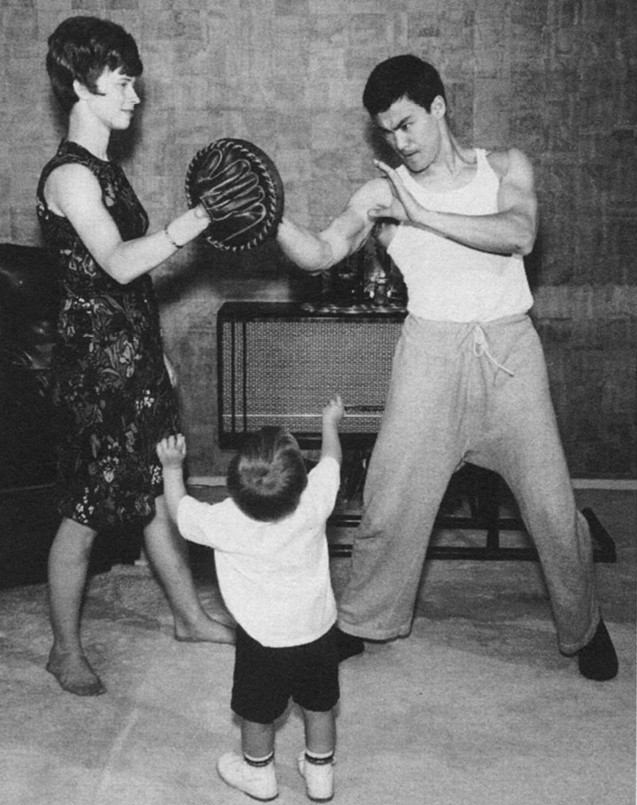 到了1965年,李小龙将西洋拳的“1-2”连击拳法(右刺拳,左交叉拳)和中国武术的挂锤加入到他的咏春拳练习中。更重要的是,这时,李小龙已经利用杠铃来努力训练前臂,通过有氧训练来增强耐力,同时,开始针对自己的腹部进行专门训练。