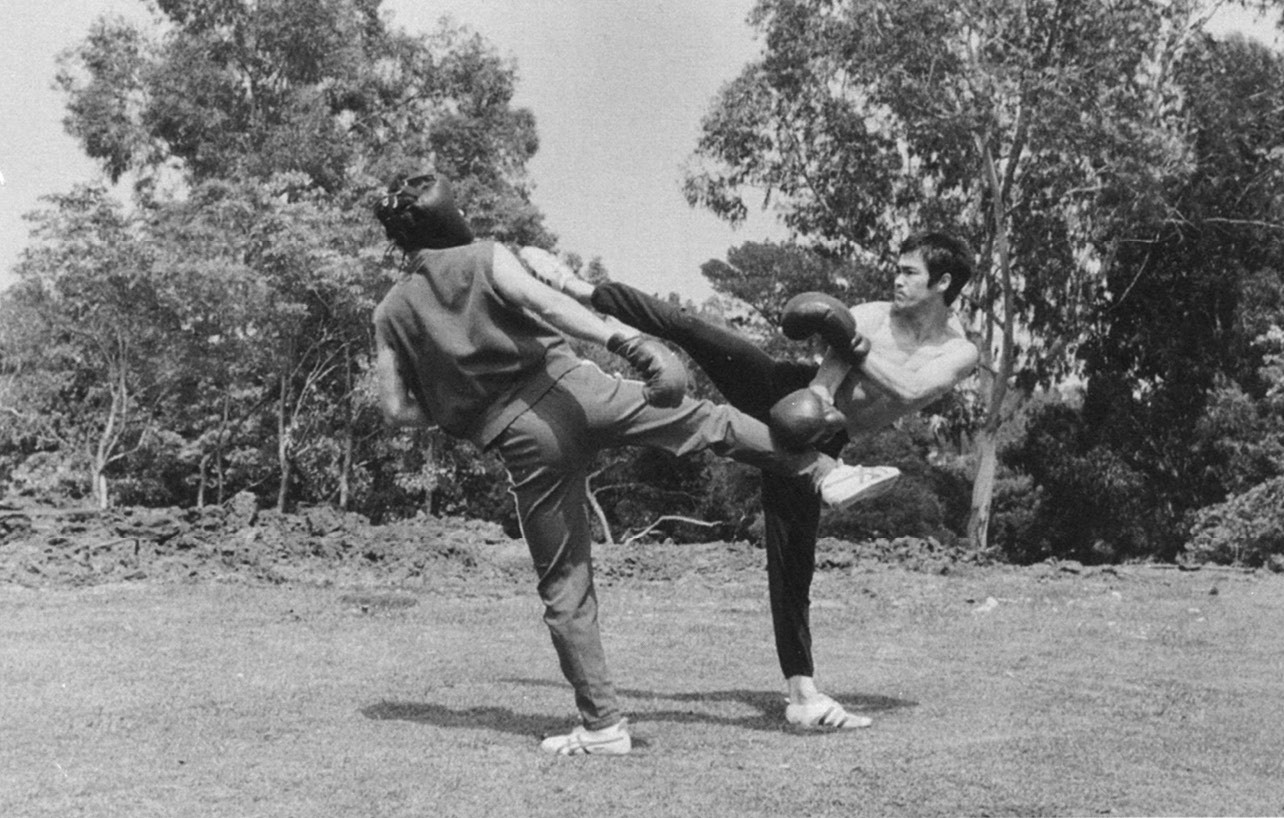 这时,你会发现来自于咏春的传统影响,在李小龙的训练计划中似乎完全看不到了。没有套路的练习,没有木人桩的练习,也没有空拳的练习。他的踢法也不像咏春强调的那样局限在较低的角度。当然,这并不能说李小龙已经完全忘记或废除了传统知识和技能,而是它们已经嵌入了他神经肌肉的最深处,只需要随时启动。