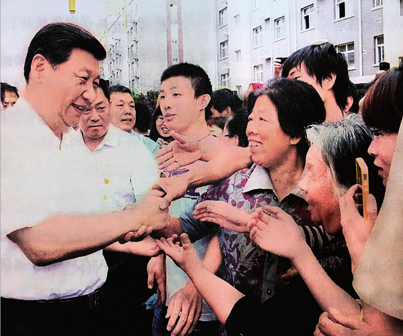 2008年1月12日,习近平到塔元庄村调研,与当地村民亲切握手。
