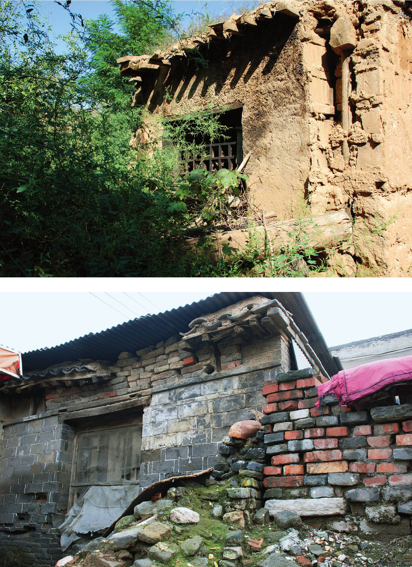 20世纪80年代,塔元庄的土房子和砖房子。