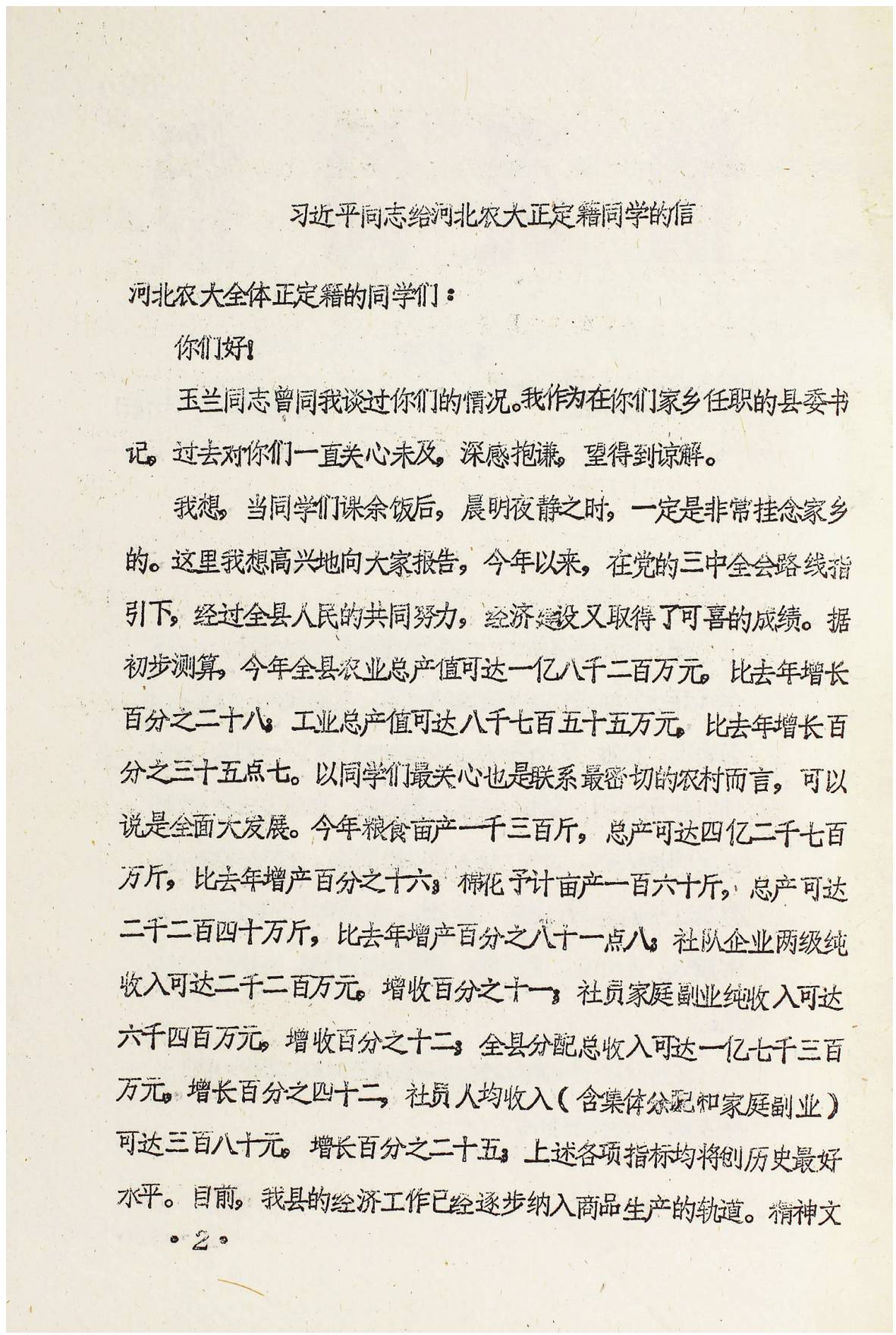 1983年,习近平写给河北农大全体正定籍学生的信(之一)。