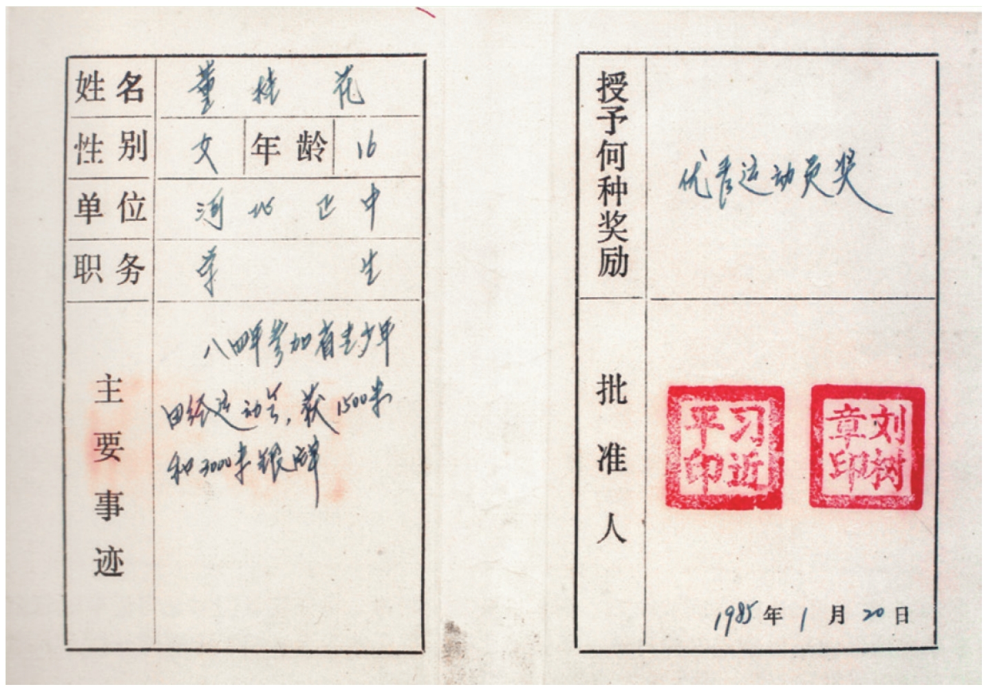习近平在正定工作期间重视体育事业的发展,图为1985年1月颁发的“优秀运动员奖”。